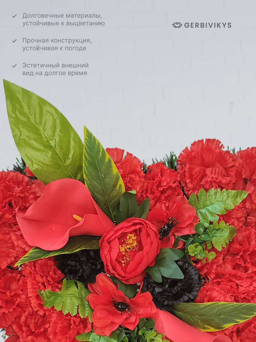 Похоронную композицию венок сердце красно-черное можно укомплектовать лентой премиум качества с надписью. Наши изделия собираются из качественных искусственных цветов, устойчивых к воздействию ультрафиолетового излучения и погодных условий. Мы создаем памятные композиции с любовью, вниманием к деталям. Наши товары долговечны. Композиция от интернет-магазина Гербивикус – это не просто декор на могилу, а важный элемент прощания, который помогает выразить глубокие эмоции и уважение к жизни и памяти любимого человека. Перед отправкой наши товары проходят контроль качества и дополнительное отпаривание. При необходимости венок на похороны может быть упакован в полиэтиленовый пакет высокой плотности. Это позволит избежать повреждения траурного венка при транспортировки. А также защитит Ваши руки от острых металлических элементов каркаса венка.